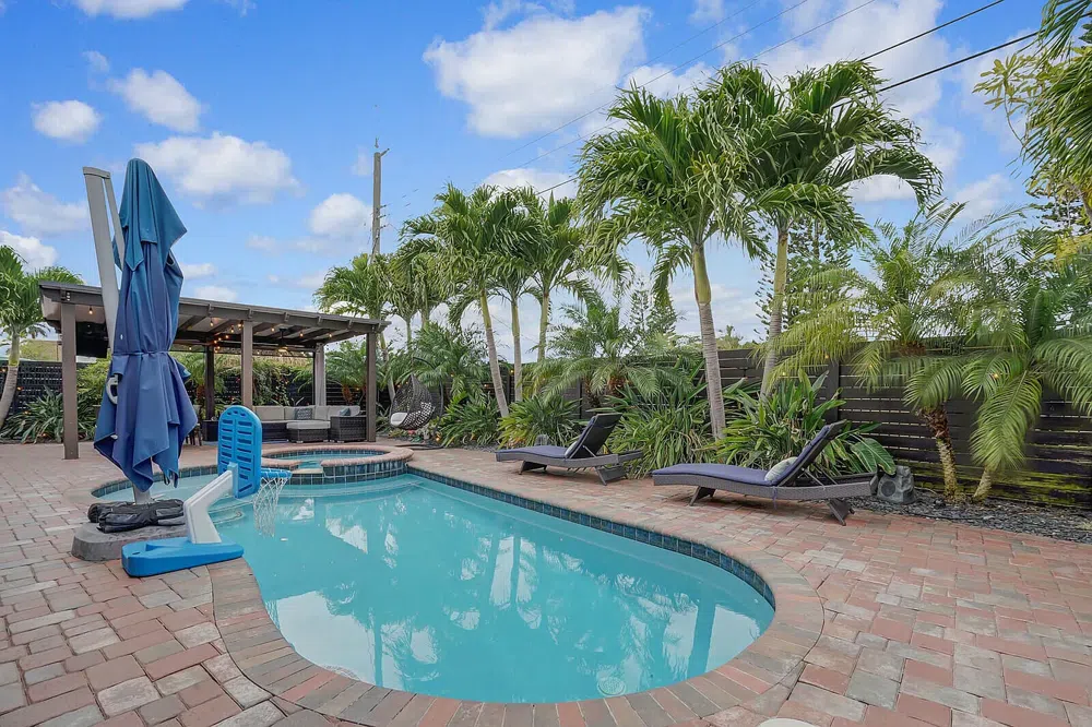 Nestled in the highly sought-after neighborhood of The Cove, this charming 4-bedroom, 2-bathroom home offers an inviting layout that seamlessly blends comfort with modern amenities. This cash producing AirBnb has a 5 star rating and is a staple for returning guests. One of the standout features of this home is the private oasis backyard which sets it apart from others in the area. With a heated salt water pool, an 8 person hot tub, hurricane rated gazebo, bar and a daybed you'll be ready to live the South Florida lifestyle all year round. The mature landscaping throughout really makes this home feel like a tropical retreat. The interior has 4 bedrooms, one of which is being used a gym and two renovated bathrooms. The kitchen offers black SS appliances, quartz countertops and new backsplash. This home has 2 spacious living areas with one set up as a game room. The house has all hurricane impact windows and doors throughout, a barrel tile roof that was replaced in 2004 and a large hurricane rated shed. 4 year old tankless water heater, 3 year old Carrier AC system, all new ducts replaced 10 years ago, newer electrical panel replaced 6 years ago, 12,000 watt generator that runs the AC, some appliances and lights. The Cove is ideally located in East Deerfield Beach just a short bike or golf cart ride from the beach. Some of the best restaurants in the city and shopping are just a short drive away offering the perfect balance of tranquility and convenience. This home is a rare find in one of the area's most desirable locations. For information on the AirBnb income generated in the last 12 months give the listing agent a call. The sellers have thought of every minor detail when renovating this house and it's ready for it's new family or Airbnb investor!